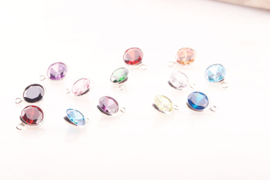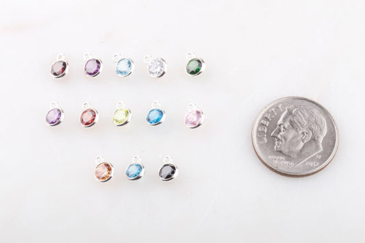 6mm - Sterling Silver Birthstone Charm Drops, AAA Top Quality Cubic Zirconia Bezel Charm, Permanent Jewelry Supply, CZ Birthstone Drops