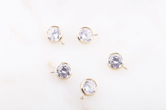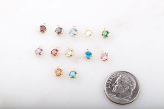 6mm - Gold Filled Birthstone Charm Drops, AAA Top Quality Cubic Zirconia Bezel Charm, Permanent Jewelry Supply, CZ Birthstone Drops