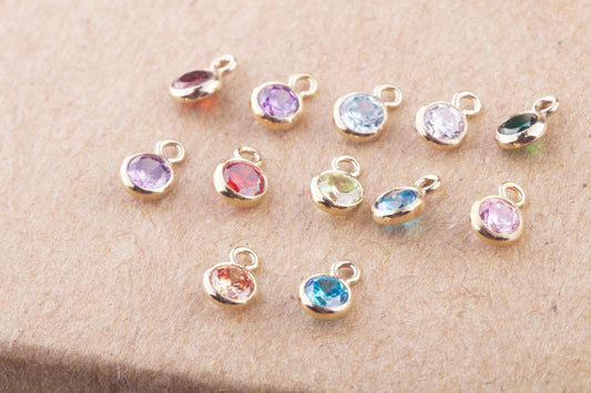 4mm - 14K Gold Filled CZ Birthstone Charms, Top Quality Cubic Zirconia Bezel Charm, Permanent Jewelry Supply, Bulk CZ Birthstone Charms