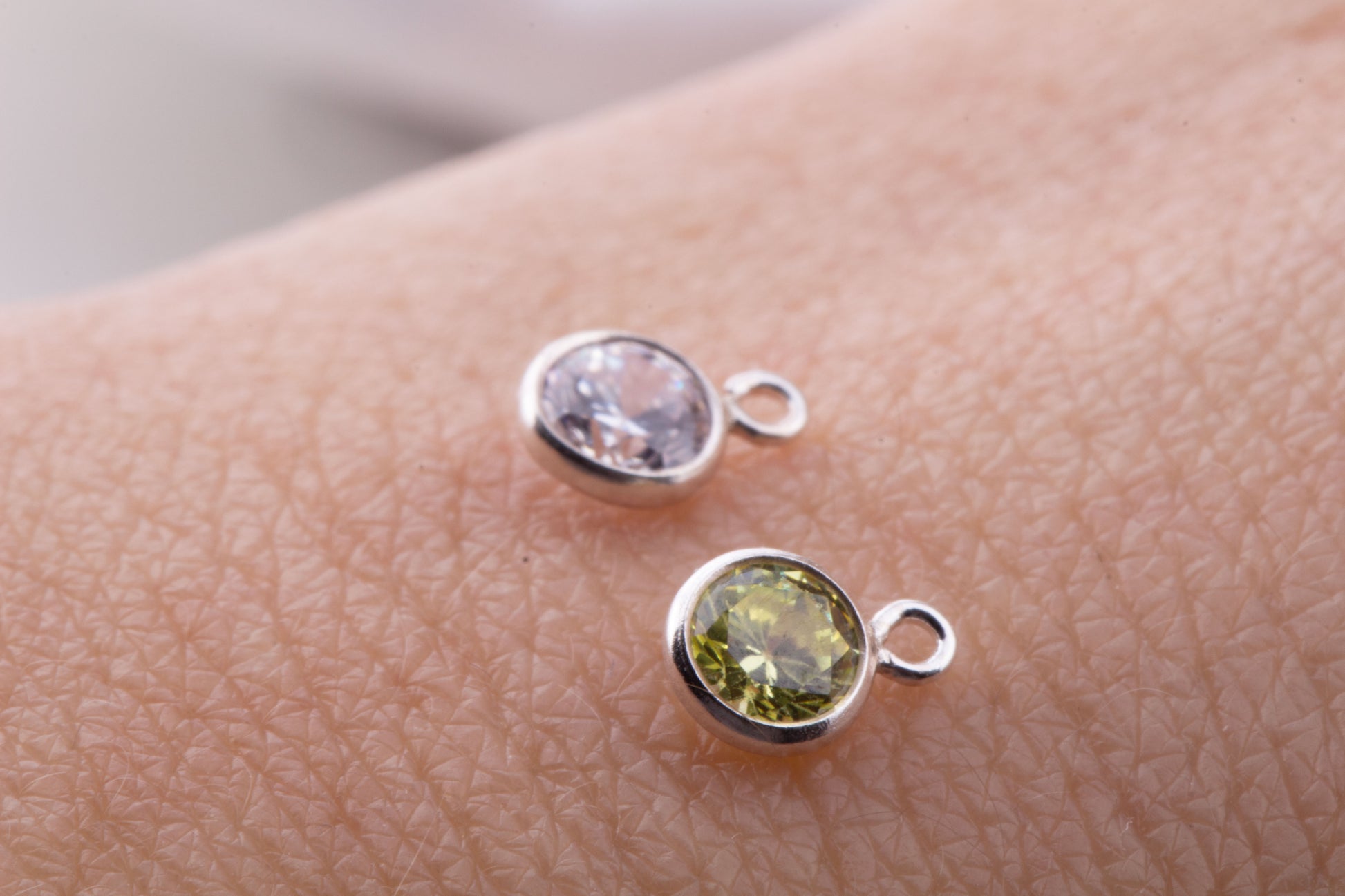 4mm - Sterling Silver Birthstone CZ Charms, AAA Top Quality Cubic Zirconia Bezel Charm, Permanent Jewelry Supply, Bulk CZ Birthstone Charms